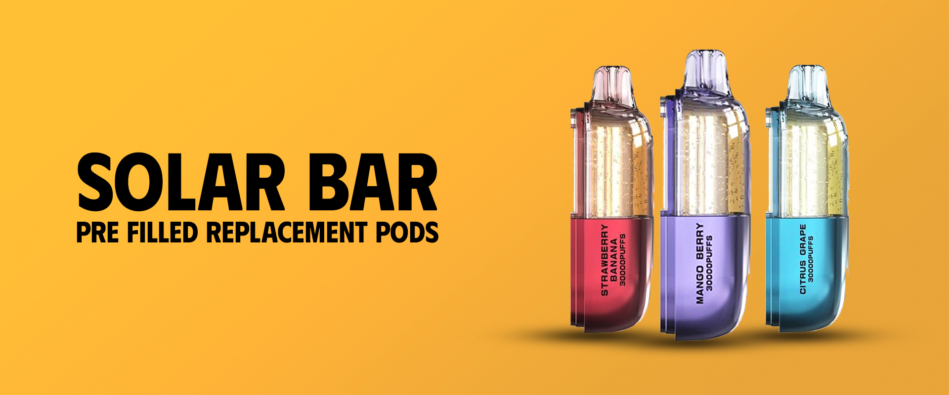 Experience the new Solar Bar Pre-Filled Replacement Pods, designed for smooth, flavorful vaping that lasts. Each pod delivers up to 30,000 puffs with a rich 20ml capacity, ensuring long-lasting enjoyment. Explore an exciting range of flavors, including Strawberry Banana, Passion Fruit Mint, Mint Pineapple, Ice Edition Mango Berry, and Lychee Grape — each crafted for a perfectly balanced taste and refreshingly cool finish.