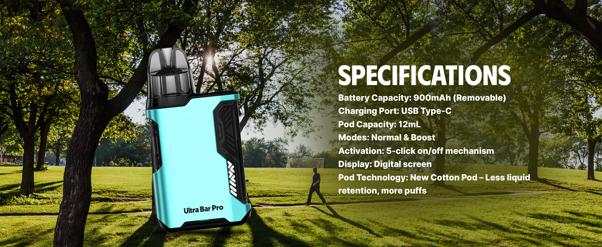 Experience next-level performance with the Ultra Bar PRO — a powerful disposable designed for those who want more from every puff. With a 28.5mg/mL pod, up to 18,000 puffs, and a removable 900mAh battery, it delivers long-lasting satisfaction in both Normal and Boost Modes. The digital display, Type-C charging, and new cotton pod technology ensure richer flavor, smoother hits, and consistent performance every time.