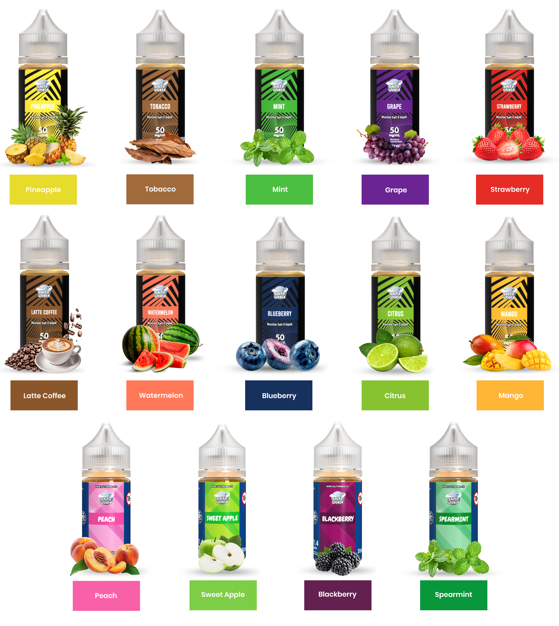 Salty World by Shosha Vape features 14 exceptional flavors, from zesty Citrus and smooth Latte Coffee to rich Tobacco and refreshing Mint. Crafted with premium ingredients, each blend offers a satisfying and smooth vaping experience. Elevate your vape with Salty World – a perfect balance of flavor and satisfaction in every puff.