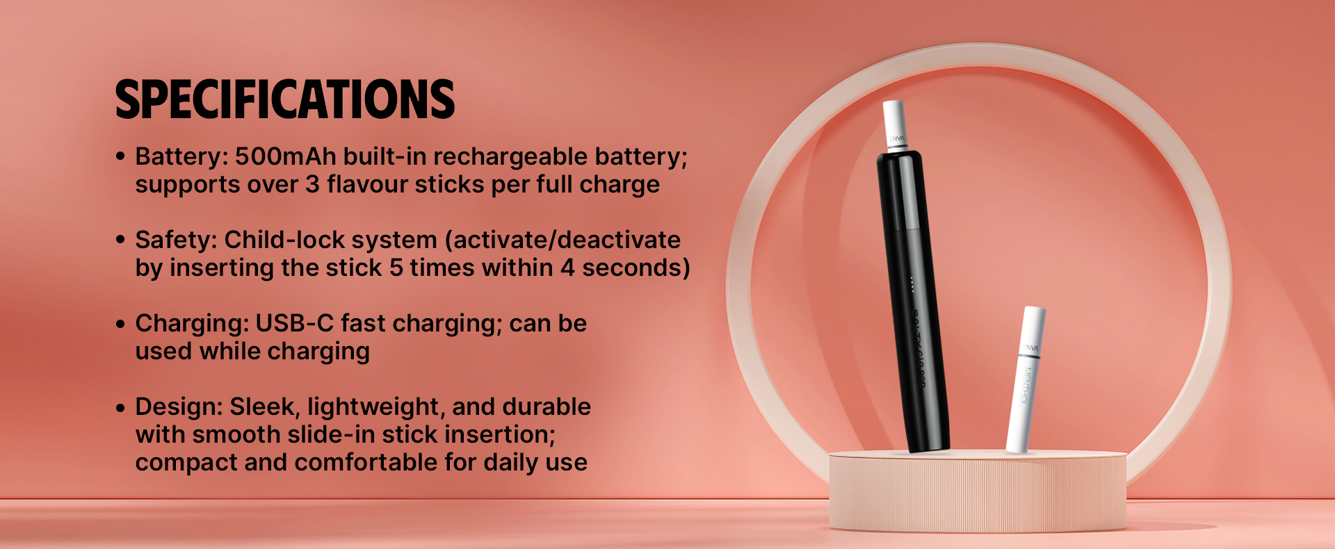 Experience smooth, rich flavour with the Salty Cig Pod Device, designed for effortless use with flavour sticks. Its compact, modern build delivers consistent performance and a cleaner alternative to traditional smoking, powered by a 500mAh battery with fast USB-C charging and a built-in child-lock for added safety—simply insert your flavour stick and enjoy a reliable, portable, and hassle-free vaping experience.